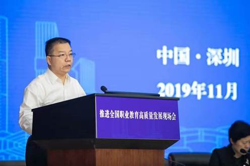 11月26日至27日,推进全国职业教育高质量发展现场会在深圳职业技术学院举行。国务院副秘书长丁向阳出席会议并讲话,会议由教育部副部长孙尧主持。国家有关部委,各省(区、市)教育行政部门,有关社会团体、职业院校和行业企业代表参加会议。我院作为全国4所高水平高职院校之一,在大会作交流发言。