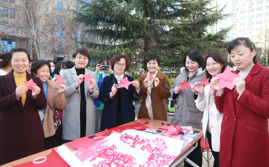 宣传部联合院工会开展“我想对党说句话”庆祝“三八”节剪纸活动,活动现场专门聘请剪纸老师,从形象设计、叠纸要点、下剪角度等深入浅出地指导,手把手教授,折叠、阴阳刻、刺孔等传统技法得以综合运用。在一阵“咔嚓咔嚓”声中,一张张喜庆的红纸在大家手中呈现出各种形状,一幅幅寓意吉祥、花样繁多的作品呈现在大家眼前。女教职工们在明媚的春光中,通过剪纸艺术抒发对党、对祖国、对人民的热爱。大红色的党徽、大红色的剪纸、粉红色的笑脸成为这个春天最美的景色。