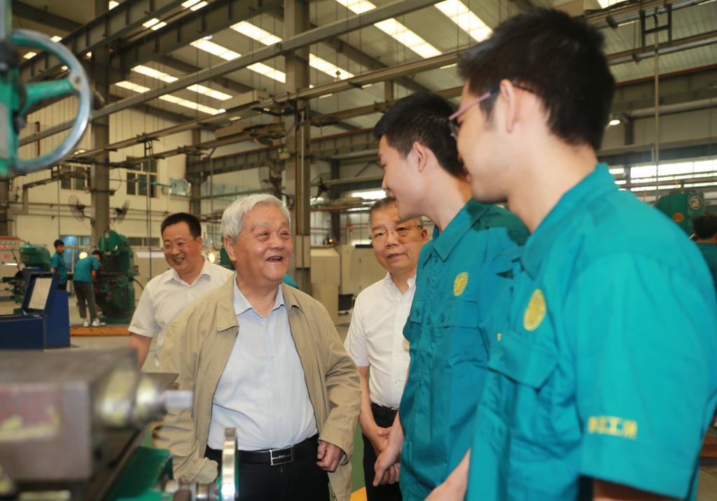 在听取了刘永亮校长对学校发展的整体介绍,以及我校机械、材料两个“双高”专业群的建设情况汇报后,屈贤明教授提出了指导意见和建议。他希望我校在装备制造业特色学科发展和“双高”建设中紧跟行业、产业的新趋势和新业态,一要突出绿色制造,将绿色节能与智能制造相结合,加入到绿色产品、绿色装备的发明与应用推广中;二要关注新能源技术的发展,跟上国家能源结构调整的步伐,深化对光伏产业的研究与利用;三要发展服务型制造业,将传统以制造为中心的行业产业向以服务为中心转变;四要培养学生的复合性与创新性,充分发掘学生的潜力与能力,培养出理论知识扎实、动手能力强、思维开阔的新型技术技能人才。